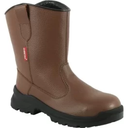 - Bahan: Steel toe cap (pelindung besi) yang mampu menahan benturan hingga 200 joule. Ini melindungi jari kaki dari risiko benda jatuh atau tekanan berat.